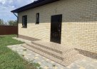 Дом облицован кирпичом, утеплитель - пенопласт, стена - керамзитовый блок. Участок облагорожен - плитка, забор, ворота.