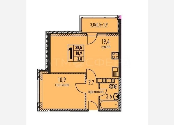 • Общая площадь:40.7 кв.м