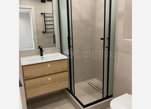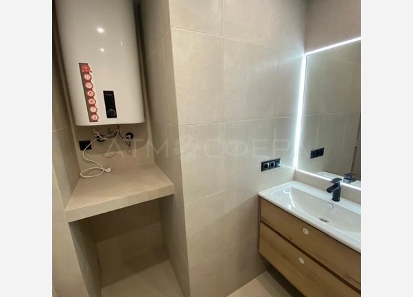 - Ванная (душевая кабина, раковина, унитаз, зеркало с подсветкой, полотенцесушитель, водонагреватель, вывод под стиральную машинку, мебель)