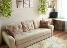 Есть полноценная спальня на втором ярусе, где расположена двуспальная кровать 1400*2000мм, днем можно закрыться и отдыхать, никому не мешая, не нужно ничего разбирать и собирать и т.п. Диван и жилая зона свободны. При желании можно разобрать диван, оба блока дивана пружинные получается еще одна полноценная двуспальная кровать. Диван почти новый.