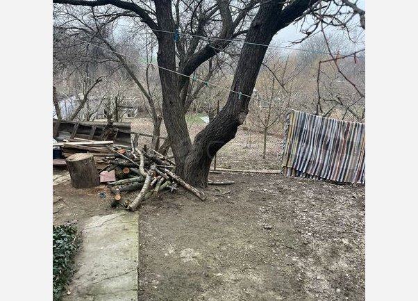 На участке большой сад с плодовыми деревьями (вишня,яблоко,персик,абрикос,алыча,виноград,малины,смородина,клубника) есть место под огород,растёт всё.